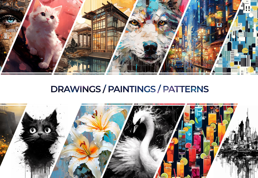 Drawings, Paintings & Patterns - Midjourney Mastery - Tips, Techniques, 100 Illustrated Prompts